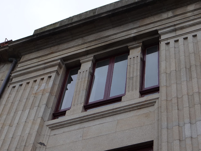 This building at 18 Rúa do Areal in Vigo has many beautiful Art Deco features. It is currently occupied by a variety of businesses, that include a rock bar, a restaurant, and a women's clothes shop. All I could find out about it was that it was built in 1928 and has the initials EP accompanying the date over the main door.